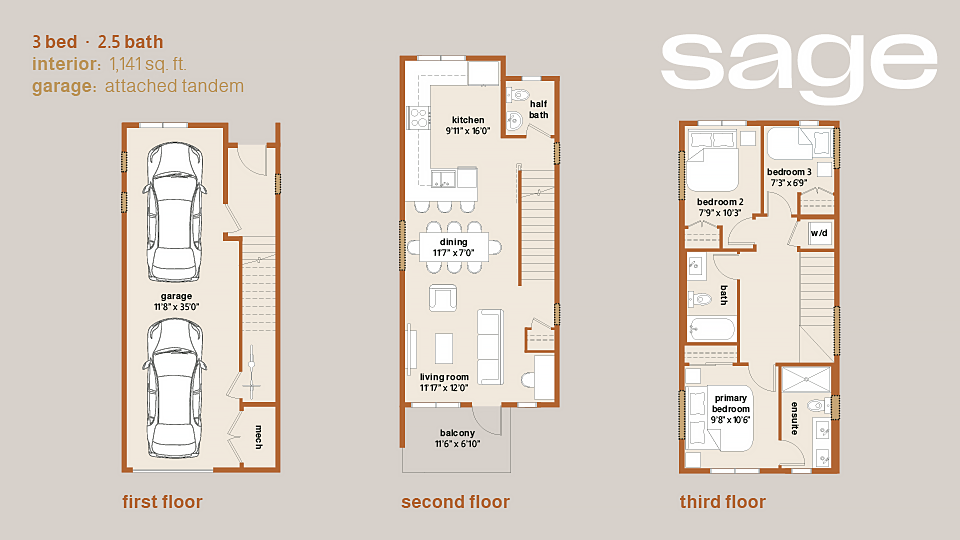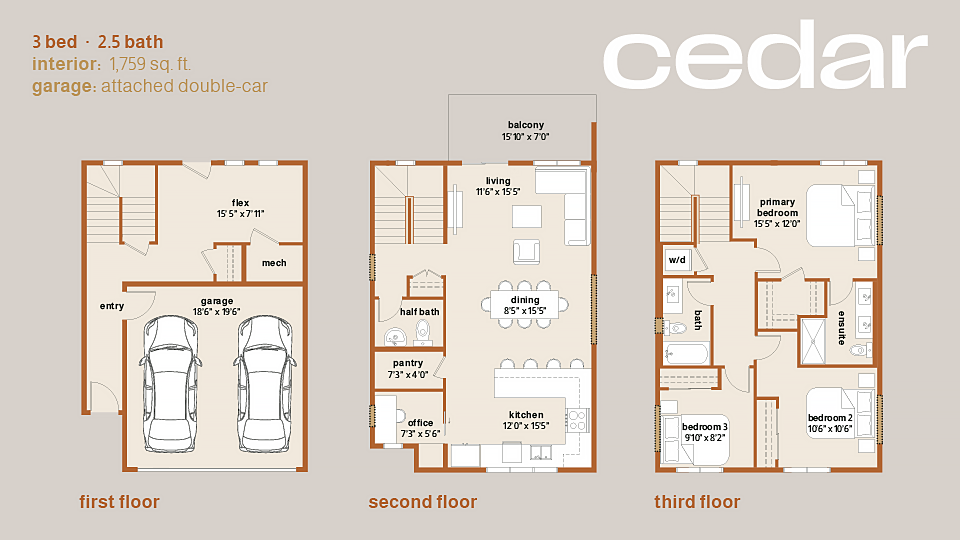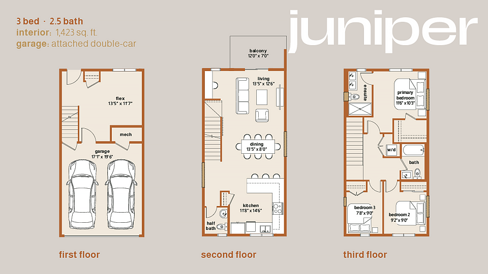 - Third-Level Floorplan Option: 2 bedrooms (dual master with ensuite bath)
