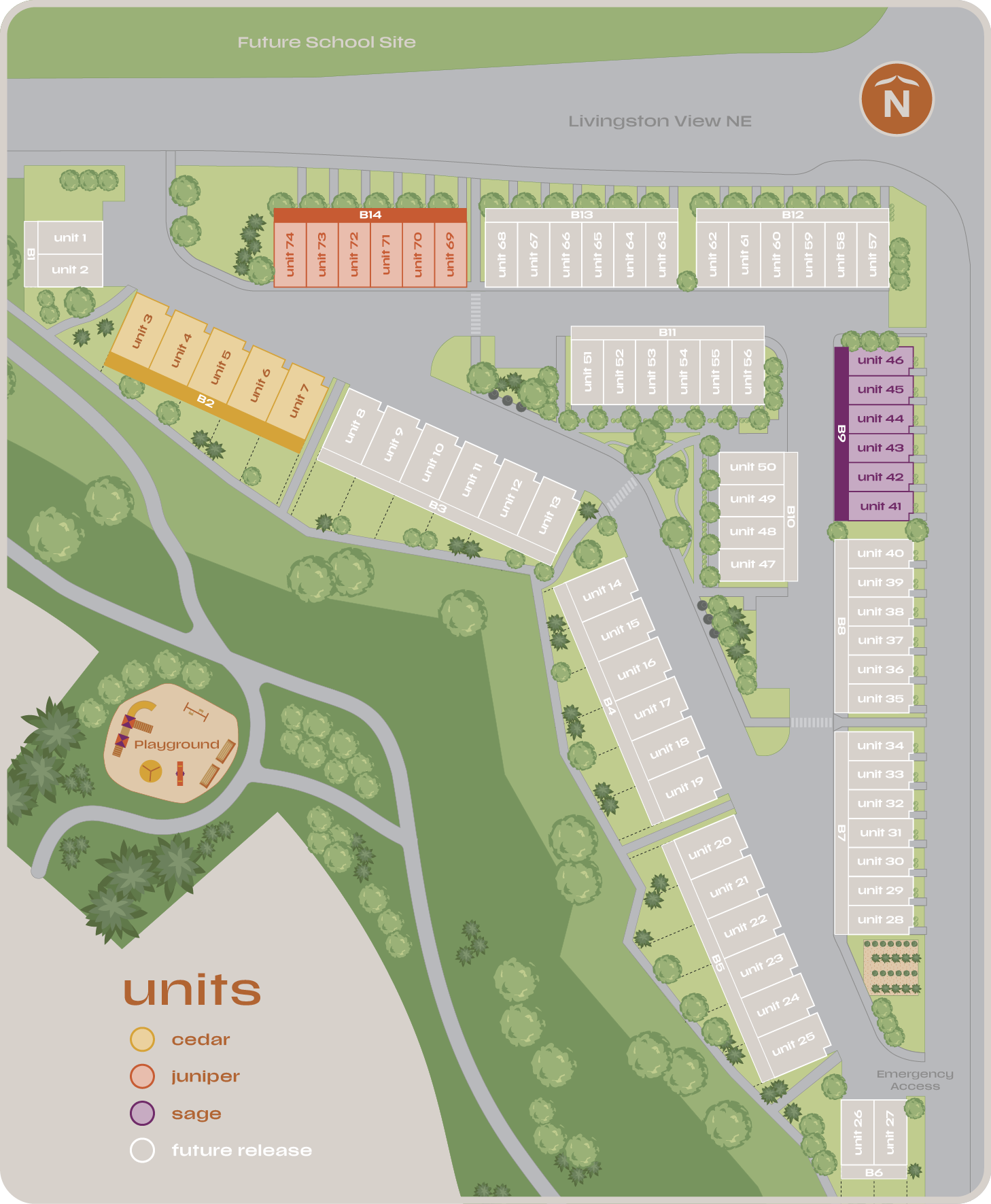 3 to 4 Bedroom Townhomes Starting at $434,900 +GST • Double Car Garages • Private Yards & Patio Spaces • Backing onto a Park Setting & Playground • Across from a Planned School & Park •